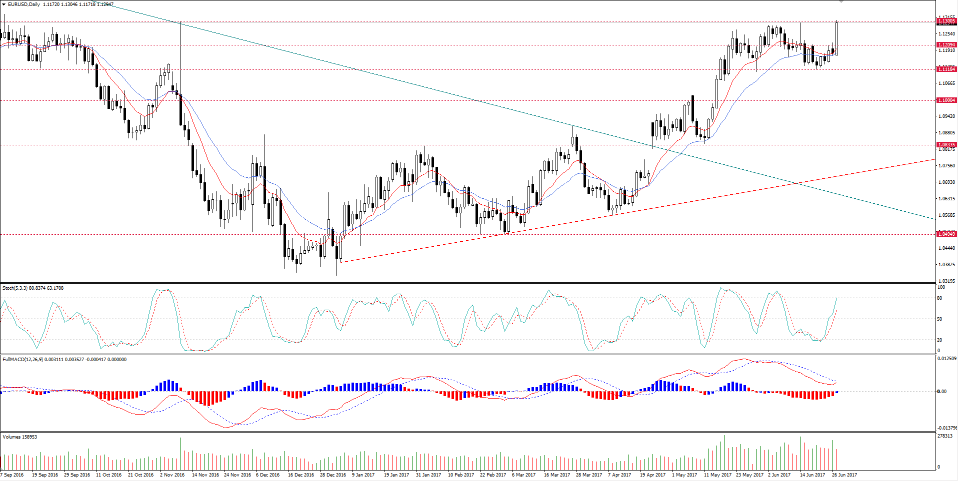O EURUSD teve um dia com forte alta, movimento esse impulsionado pela fala de Mario Draghi, em encontro do Banco Central Europeu que está sendo realizado em Sintra, Portugal.