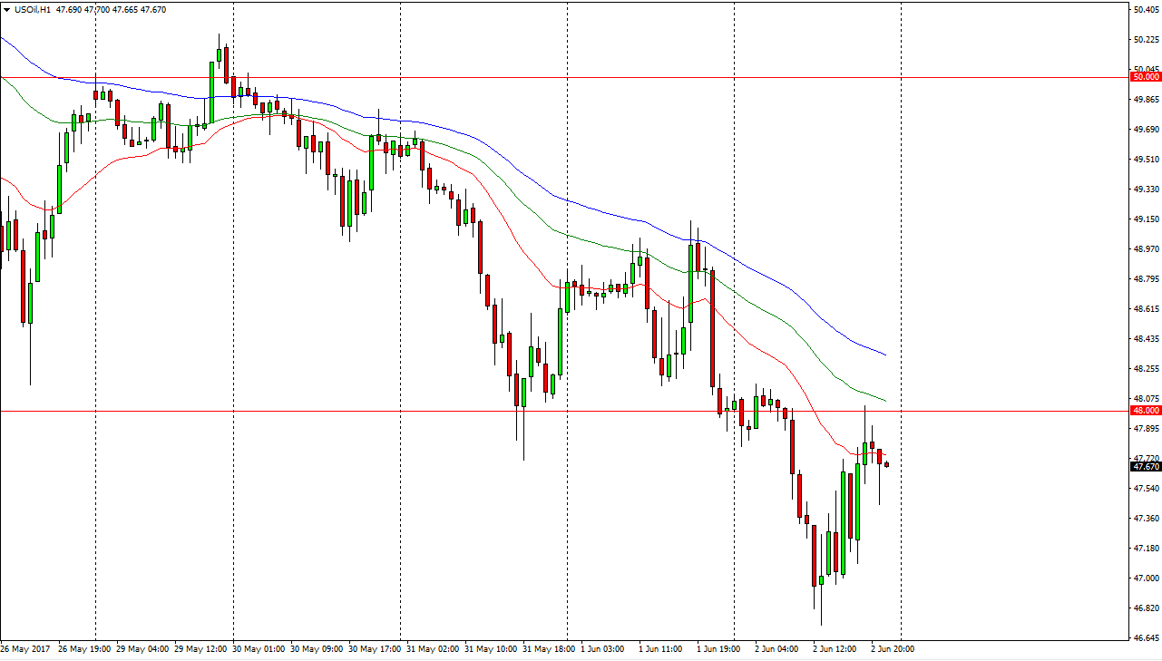 O mercado do Petróleo Bruto WTI caiu, de forma significativa, durante a sessão de Sexta-feira, mas retraiu para ressaltar novamente a caminho do nível dos $48. Neste momento, nós corremos para um pouco de ruído e eu julgo que nós estamos numa conjuntura muito interessante. Se nós pudermos quebrar abaixo do nível dos $47.25, eu sinto que o mercado rumará novamente às baixas e talvez até quebrar abaixo daí. Alternativamente, se nós pudermos quebrar acima do nível dos $48.10, eu sinto que o mercado continua a rumar para o nível dos $49 acima. Eu espero ver um montante significativo de volatilidade, sobretudo porque existem tantas manchetes siferentes fora daí que poderiam mover este mercado. A OPEP tem vindo a cortar a produção, mas os mesmos não funcionaram. Devido a isto e à reacção durante o dia, eu julgo que nós estamos simplesmente a testar uma área de resistência típica e, consequentemente, eu estou bearish.