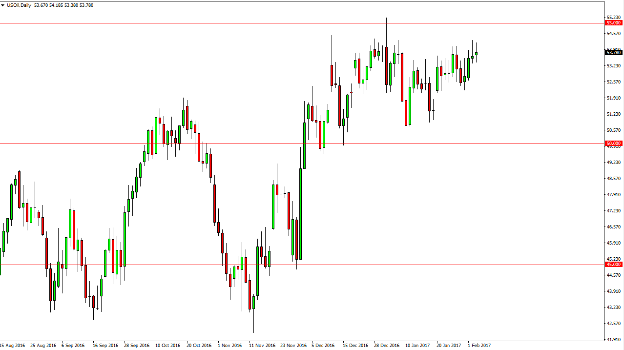 Os mercados do Brent apresentaram uma sessão agitada, formando uma vela neutra, na Sexta-feira, Parece que o mercado está a tentar rumar novamente às altas, mas existe tanta resistência nessa proximidade que é difícil para o mercado continuar. Eu espero que uma quebra abaixo do fundo da chuva de Sexta-feira deveria enviar este mercado em busca dos $55, que têm sido bastante magnético para o preço. Se nós quebrarmos abaixo daí, então o mercado rumará, provavelmente, ao nível dos $53.50, que tem sido tão favorável, ultimamente. Eu reconheço que os mercados do petróleo estão actualmente bastante agitados e é difícil imaginar um cenário no qual eu pretenda colocar qualquer dinheiro real para funcionar, especialmente numa mudança a mais longo prazo. No entanto, isto não quer dizer que seja possível bater este mercado, de facto, eu julgo que essa é a forma de fazer dinheiro, que é algo que eu normalmente não digo. Independentemente de que lado da equação você se encontre, espere alguma agitação e volatilidade. Mantenha a sua posição pequena e será o mais cuidadoso possível.