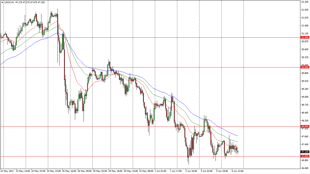 O mercado do Petróleo Bruto WTI rolou novamente durante a sessão de Terça-feira, já que nós continuamos a pressionar para cima, contra o nível dos $47. Essa é uma área que tem sido favorável, mas com os Inventários do Petróleo Bruto a serem lançados hoje, nos Estados Unidos, nós poderíamos obter outro catalisador, para começar novamente a vender. Com isto em mente, uma quebra abaixo do nível dos $47, que dure mais do que algumas horas, será razão suficiente para eu começar novamente a vender. Os rallues, neste momento, também deveriam continuar a encontrar os vendedores e, com isto, eu acredito que a compra é tudo menos impossível. Eu acredito que o nível dos $48 acima será também massivamente resistente. De qualquer forma, espere algum ruído, já que existem várias razões para acreditar que o petróleo bruto continuará a ser difícil.