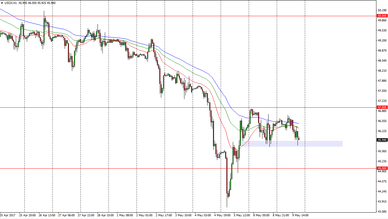 Petróleo Bruto WTI O mercado do Petróleo Bruto WTI rolou um pouco durante o dia de Terça-feira, à medida que nós continuamos a testar o nível dos $45.75