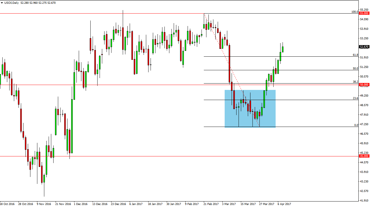 O mercado do Petróleo Bruto WTI fez um rally durante o dia, na Segunda-feira, para continuar a pressão bullish que nós temos visto, ao longo de algum tempo. Nós quebrámos acima do nível dos $52, mas houve muito ruído logo acima que poderia causar problemas. Ultimamente, se nós conseguirmos retrair a partir daqui, eu julgo que será apenas uma questão de tempo até os compradores regressarem, já que nós temos visto tanta força neste mercado. Eu julgo que o mercado almejará o nível dos $55 acima, mas não será fácil. Nós estamos sobre estendidos e, como tal, um retrocesso seria saudável e deveria atrair mais compra ao avançar. Eu julgo que o nível dos $50 será um “piso” absoluto no mercado e, como tal, uma vela favorável subjacente é exactamente daquilo que eu procuro retirar vantagem. No entanto, os $55 acima deveria ser resistente e será necessário muito trabalho para chegar acima daí.