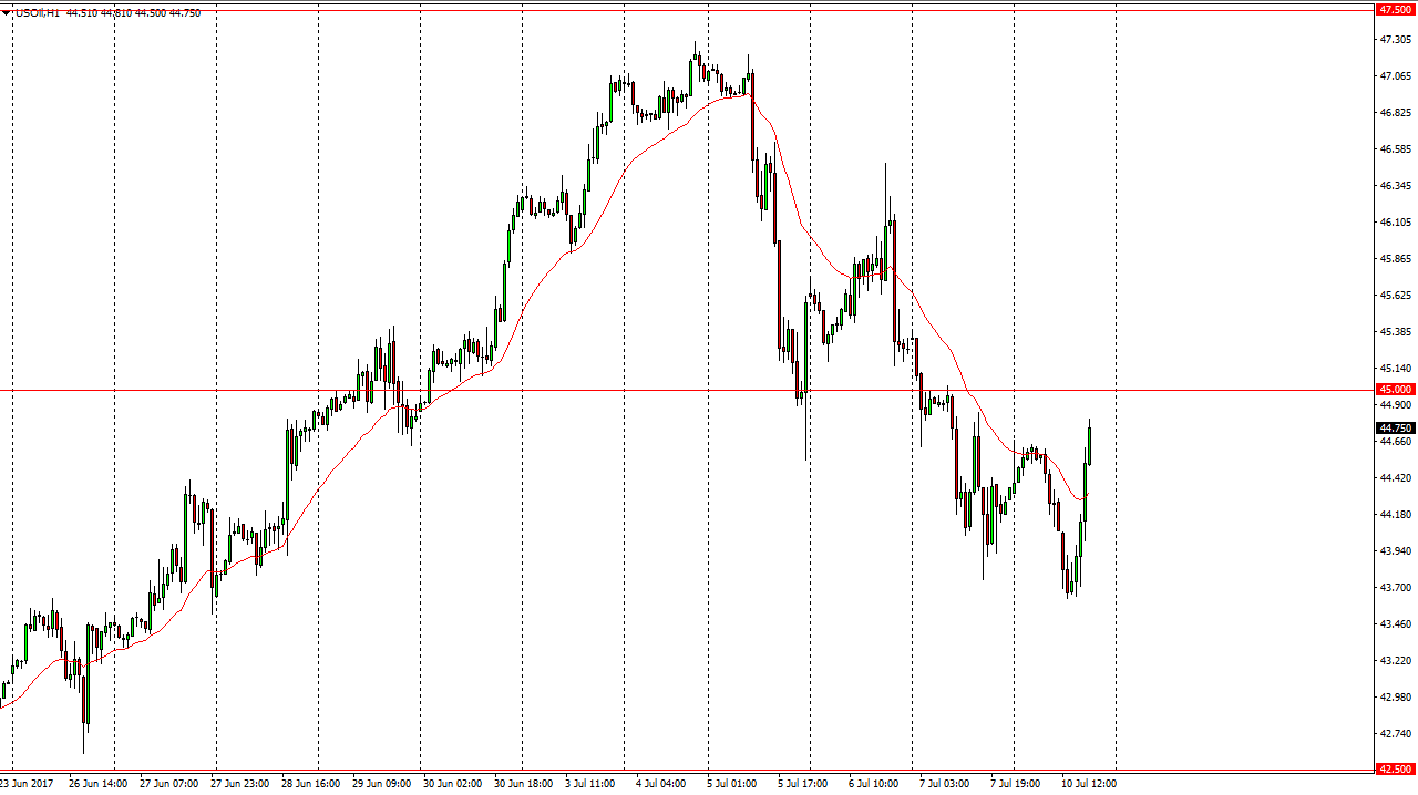 Petróleo Bruto WTI O mercado do Petróleo Bruto WTI fez uma viagem turbulenta na Segunda-feira, já que nós caímos inicialmente e depois disparou pelo