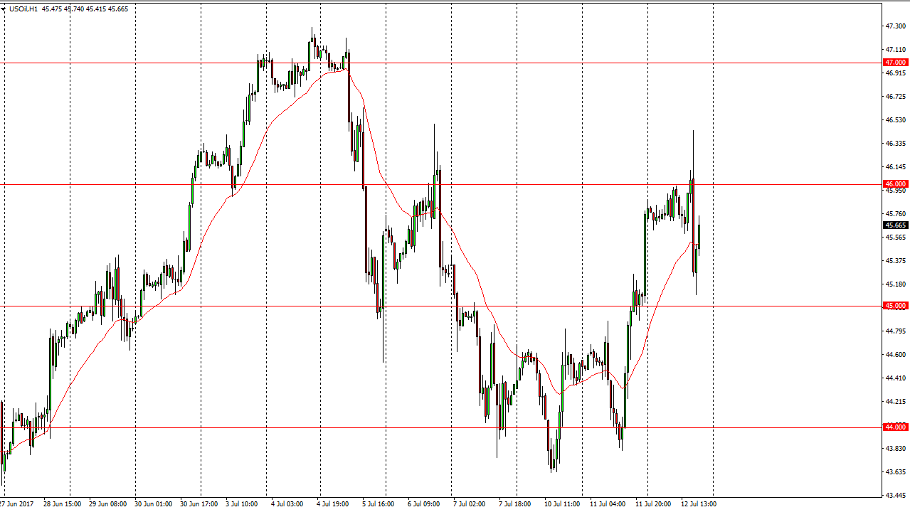 O mercado do Petróleo Bruto WTI caiu, de forma significativa, durante a sessão, após os números dos inventários terem sido muito bearish. No entanto, nós encontrámos suporte suficiente no nível dos $45, para fazer retrair as coisas e agora parece que nós estamos a tentar normalizar algo abaixo do nível dos $46. Devido a isto, eu julgo que existe alguma pressão bullish a curto prazo, mas, a mais longo prazo, eu ainda estou muito negativo acerca deste mercado. Eu julgo que o mercado tentará, provavelmente, rumar ao nível dos $47, ao longo das próximas sessões, mas, de qualquer forma, poderá ser muito difícil negociar este mercado, já que o mesmo está muito agitado e, muito francamente, os fundamentais são estão, necessariamente, bullish. Uma das principais razões pelas quais o petróleo está a fazer um rally poderia ter a ver com o facto de o par USD/CAD ter caído muito significativamente.