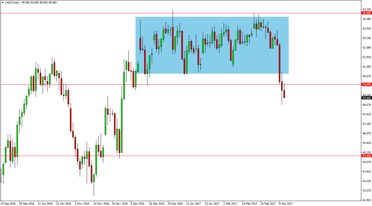 Petróleo Bruto WTI O mercado do Petróleo Bruto caiu, de forma significativa, durante a semana, deslizando ao longo do nível dos $50. Nós quebrámos,