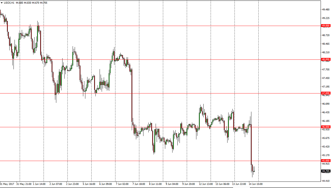 O mercado do Petróleo Bruto WTI avançou para as laterais ao longo de algum tempo, mas depois tentou fazer um rally. Ultimamente, o rally falhou e nós quebrámos, significativamente, a partir daí. O mercado chegou abaixo do nível dos $45, já que parece que o armazenamento está a continuar a funcionar contra o valor do petróleo bruto, em geral. Nós tivemos muito disso e faz sentido que o mercado vá continuar a favorecer o sentido descendente. Eu acredito que os rallies constituem oportunidades de venda e aquilo que você não consegue ver no gráfico à hora em anexo é que a linha de tendência ascendente, no gráfico semanal, acabou de ser quebrada. Devido a isto, eu acredito que a venda de rallies ao avançar corresponde provavelmente à melhor oportunidade neste mercado. Ultimamente, este é um mercado que deveria continuar a descer para o próximo nível dos $43.