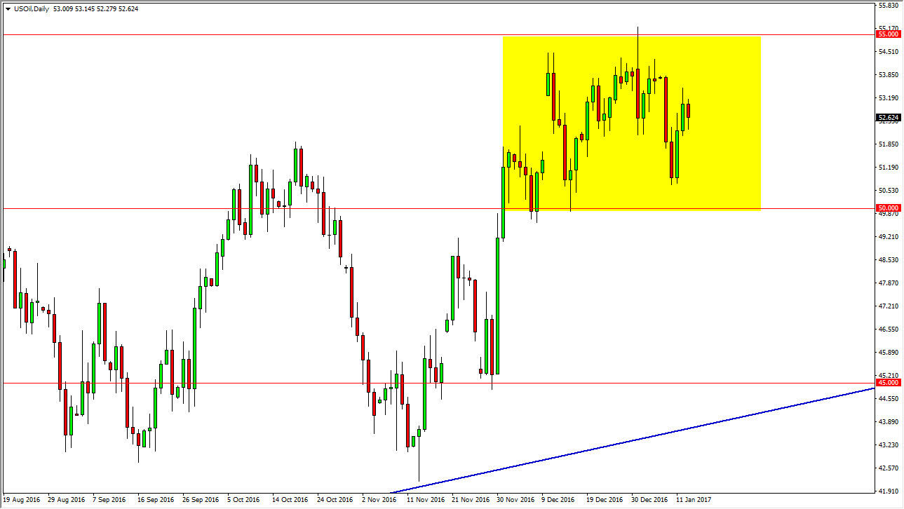 Os mercados do Brent caíram, inicialmente, durante o dia de Sexta-feira, mas encontraram suporte suficiente subjacente, para fazer retrair as coisas e parecer um pouco mais favorável. O mercado deveria depois rumar ao nível dos $50 acima, que é massivamente resistente. Se nós pudermos quebrar acima daí, o mercado poderá subir mais, mas, entretanto, eu julgo que nós estamos essencialmente a flutuar, também no mercado do Brent. O nível dos $53 subjacente é resistente, de forma massiva, e como tal, eu acredito que os compradores regressarão, de cada vez que nós nos aproximamos dessa área. Dado o devido tempo, nós teremos de tomar uma decisão, mas, entretanto, parece que o mercado ainda não está pronto para fazê-lo. Dê uma olhadela no mercado do EUA que também tende a exercer influência sobre os mercados do petróleo e, como tal, se o dólar dos EUA subir mais, o mesmo poderá oferecer um pouco de manchete. Independentemente daquilo que acontecer, você terá de ser capaz de lidar com a agitação de um mercado que está a tomar decisões sérias a mais longo prazo entre cortes de produção e cenários de produção excessiva. Os mercados do petróleo continuarão a constituir o foco de muita negociação e, consequentemente, muitos difíceis de navegar.
