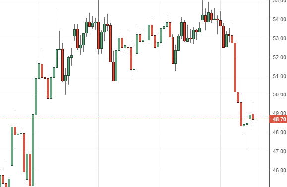 Os mercados WTI estão a tentar fazer um rally durante a sessão de Quinta-feira, mas devolveram todos os ganhos novamente. O facto é que o mercado continuará a ver pressão bearish massiva e eu acredito que nós vamos rumar ao nível dos $47, a partir daqui. Poderá ficar um pouco agitado, mas, ultimamente, eu julgo que os vendedores irão, sem dúvida, assumir o controlo ao avançar, já que este mercado lutou tanto, recentemente. O excesso de oferta tem constituído um problema ao longo de muito tempo e, muito francamente, eu estou surpreendido por o mesmo ter levado tanto tempo a mostrá-lo. Eu julgo que o alvo a mais longo prazo será de $45 ao barril. Os rallies a caminho do nível dos $52 deverão continuar a enfrentar resistência significativa e, como tal, eu acredito que eles oferecem oportunidades de venda a curto prazo para aqueles que preferem encurtar o encargo do calendário.