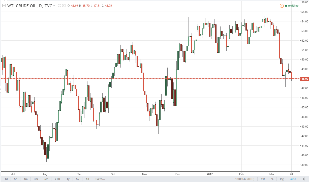 Petróleo Bruto WTI O mercado do Petróleo Bruto WTI caiu, ligeiramente, durante o dia de Segunda-feira, à medida que nós rumámos ao nível dos $40. Eu
