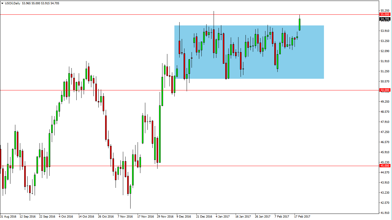 Com o mercado a não prestar atenção ao facto dos números do inventário, nos Estados Unidos, e vários outros países continuam a crescer. Com uma grande conformidade já existente, é provável que o excesso de oferta vá, eventualmente, suplantar a pressão bullish. No entanto, nós poderíamos ter outra perna mais acima e eu tenho de manter isso no fundo da minha mente, actualmente. No entanto, se nós cairmos, uma quebra abaixo do nível dos $55 deveria enviar este mercado em busca dos $53, após isso. Uma limpeza dessa área correponde a um reverso da tendência intermédia e ter-me-ia a avançar curto, ao longo de um calendário mais longo.