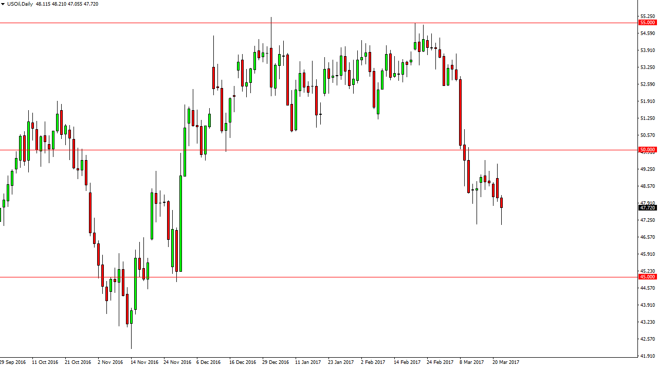Os mercados do Brent também tentaram seguir durante o dia de Quarta-feira, deslizando abaixo do nível dos $50 mas houve compradores suficientes subjacentes para suporte o mercado ligeiramente. Eu acredito que um rally a curto prazo poderia estar para surgir, mas, dado o devido tempo e eu acredito que você terá oportunidade de começar a vender um nível mais elevado. Certamente que o nível dos $53 acima tem sido resistente, de forma massiva, recentemente, e eu julgo que, dado o devido tempo, os vendedores regressarão a este mercado. Alternativamente, nós poderíamos quebrar abaixo do fundo do martelo e isto constituiria também uma oportunidade de venda. De qualquer forma, eu julgo que, dado o devido tempo, nós rumamos ao nível dos $45, também neste mercado.