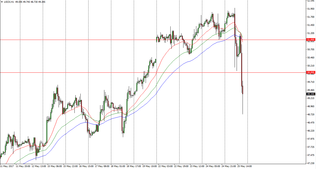 Os mercados do Brent também esgotaram e parecem agora muito bearish. Se nós pudermos quebrar abaixo do nível dos $51, este mercado deveria continuar a descer muito mais. Um pouco de rally snapback poderia acontecer, já que continuamos a ver volatilidade. A extensão dos cortes da produção foram exactamente aquilo pelo que os mercados estavam à espera e a antecipar. O facto não existirem essencialmente quaisquer notícias trouxe menos pressão bullish ao mercado. Se nós quebrarmos abaixo do nível dos $51, nós avançaremos depois para o nível dos $50. Este é um mercado que parece, de repente muito susceptível para vender pressão novamente, já que, muito francamente, a OPEP não possui habilidade para controlar mais o preço. De cada vez que nós aumentamos o preço do petróleo bruto, os principais beneficiários disso serão os produtores de petróleo de xisto Americanos e Canadianos, já que eles pretendem mais do que saltar para o mercado, a esses preços superiores. O petróleo continua uma confusão.