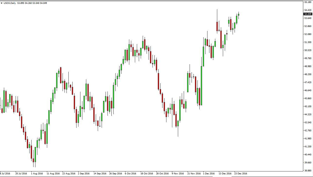 O mercado do Petróleo Bruto WTI retraiu e avançou, na Quarta-feira, à medida que nós esperamos os números dos Inventários do Petróleo Bruto a saírem nos Estados Unidos. Isto, obviamente, fará com que o mercado fique dentro da média para aguardar a direcção da procura. Ultimamente, os mercados parecem estar a focar-se nos cortes da produção que foram acordados, recentemente, mas nós temos uma longa história de países a fazerem batota sobre esses cortes da produção e eu não posso ajudar, mas gostava de saber quanto tempo demorará até um deles o fazer. Para além disso, você tem os produtores de petróleo de xisto Canadianos e Americanos a observarem este mercado e a desviar os pedaços para começar a inundar com mais oferta. No entanto, se nós pudermos quebrar acima do nível dos $55, é provável que o mercado vá depois tentar rumar ao patamar dos $60. Por um lado, se nós quebrarmos abaixo do fundo de um martelo para a sessão, na Quarta-feira, o mercado poderia cair para o nível dos $52, a curto prazo.
