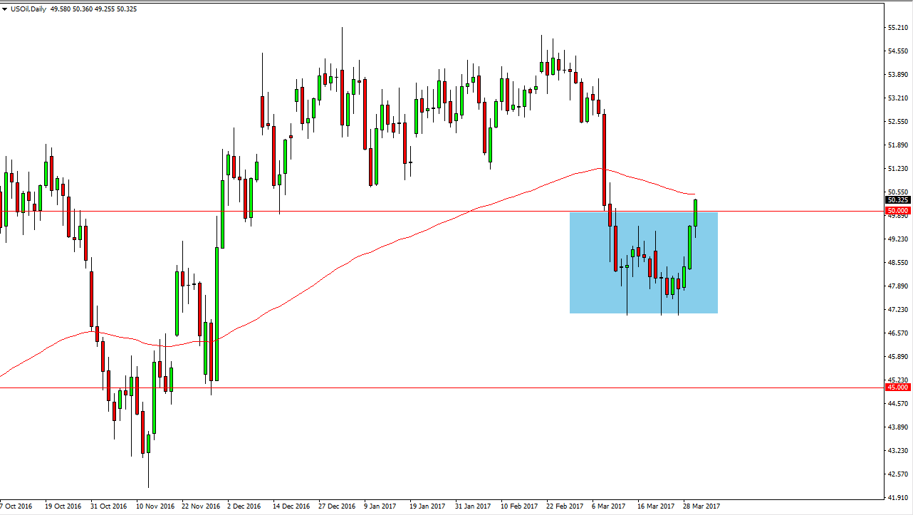 Petróleo Bruto WTI O mercado do Petróleo Bruto WTI quebrou durante a sessão de Quinta-feira, limpando finalmente o patamar dos $50. Ao fazê-lo, parece que