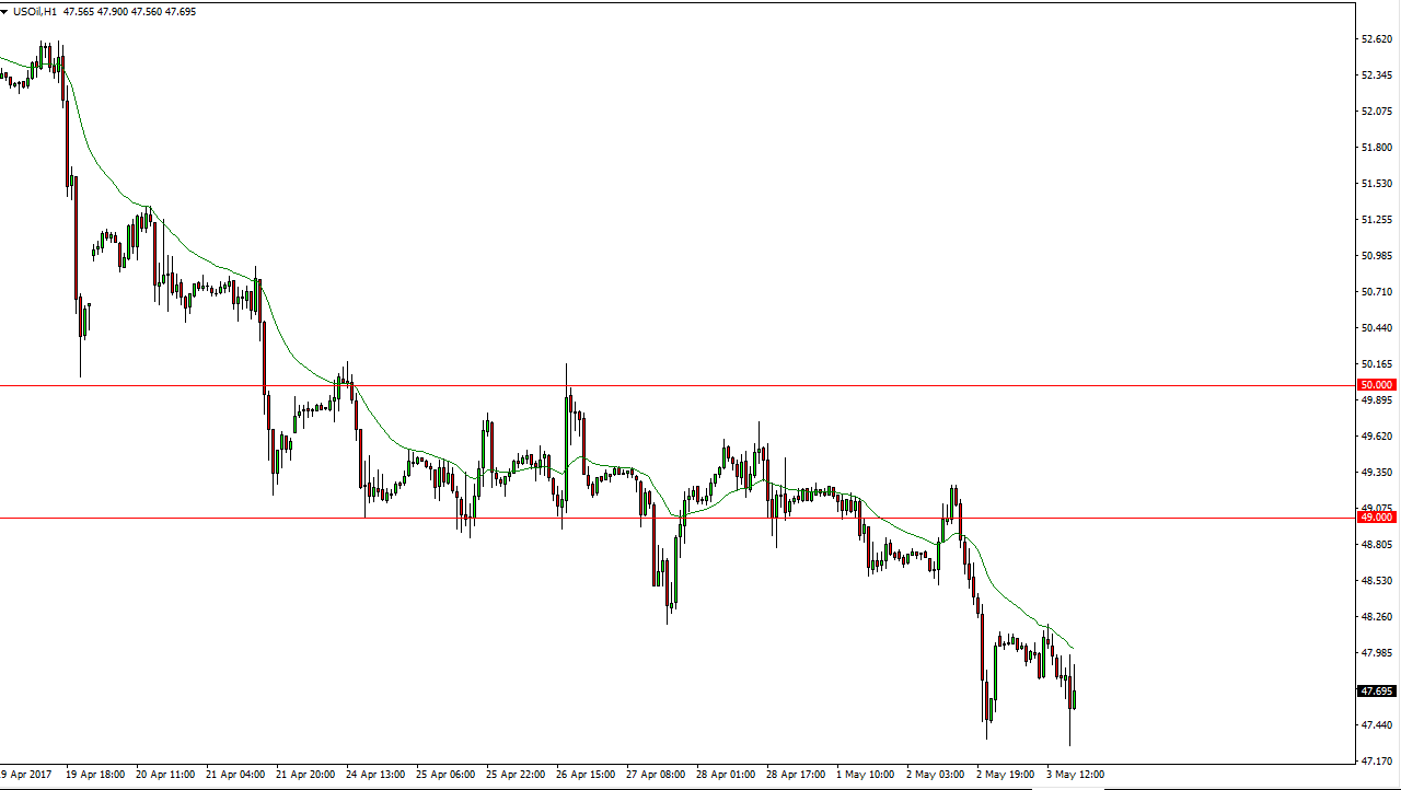 Petróleo Bruto WTI O mercado do Petróleo Bruto WTI deslizou um pouco durante o dia de Quarta-feira, mostrando novamente sinais de fraqueza. Nós temos