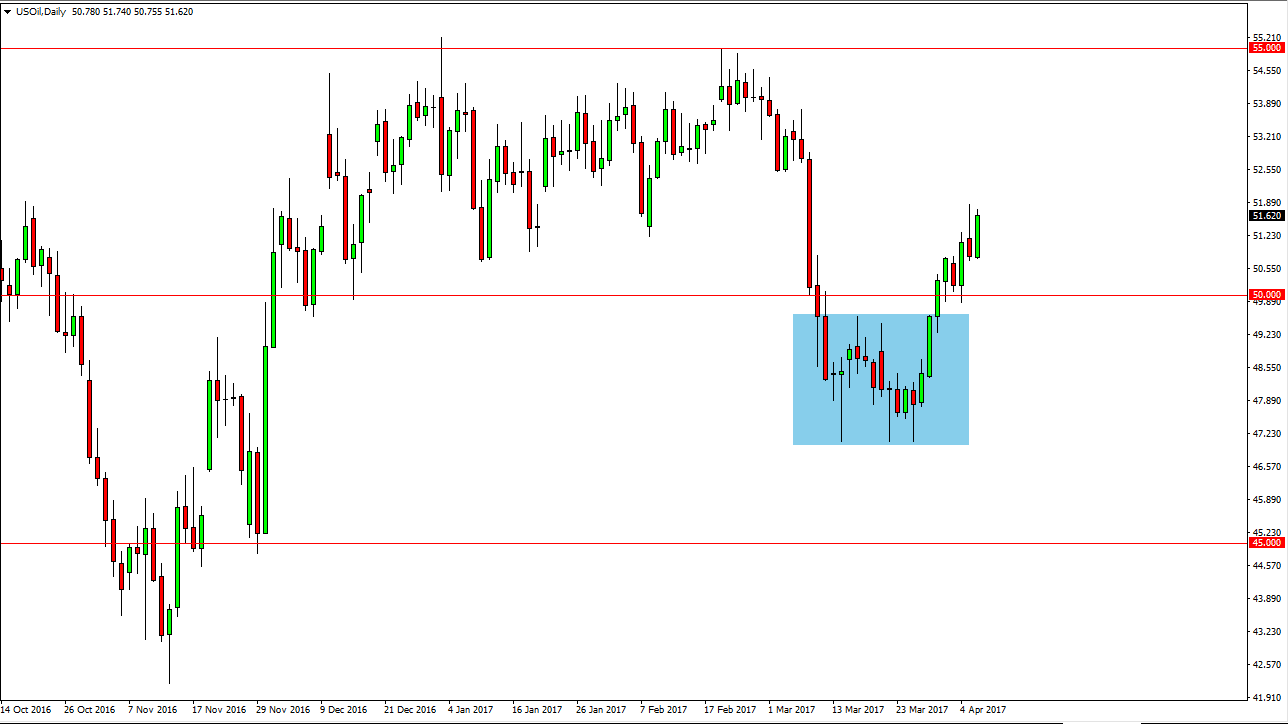 O mercado do Petróleo Bruto WTI apresentou uma sessão muito forte, na Quinta-feira, testando o topo da estrela cadente, a partir do esgotamento de Quarta-feira. Este é um sinal muito positivo, mas não será até nós quebrarmos acima do nível dos $52 e, possivelmente, até mais importante, obtermos os números do emprego, que eu vou pretender colocar dinheiro a funcionar em sentido ascendente. Alternativamente, uma quebra abaixo da baixo, tanto da sessão de Quarta-feira como de Quinta-feira, o mercado deveria buscar o nível dos $50. Se nós quebrarmos abaixo daí, então o mercado poderia apresentar-se sob pressão considerável. Actualmente, eu julgo que o mercado vai estar, provavelmente, mais agitado do que que qualquer outra coisa. Ultimamente, o mercado terá de tomar algum tipo de decisão, mas eu não sei se isso acontecerá tão cedo.