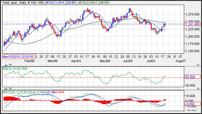 Os preços do ouro consolidaram à medida que o dólar afinou, na sequência do relatório das habitações em início mais forte do que esperado. A recente série de dados, até Quarta-feira, mostrou que a economia dos E.U.A. foi moderando, ajudando o dólar a facilitar e a pavimentar o caminho para os preços mais elevados do ouro. O suporte é visto junto da média de mudança exponencial de 10-dias em 1,225, enquanto a resistência é vista junto da média de mudança de 50-dias em 1,248. O impulso é positivo já que o índice MACD (média de mudança convergência divergência) gerou um sinal de compra de transição.