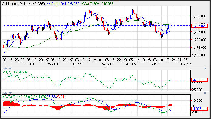 Os preços do ouro moveu-se mais para cima, mas encontrou resistência junto à média de mudança a 50-dias em 1,249. O ouro foi impulsionado pelo Euro em
