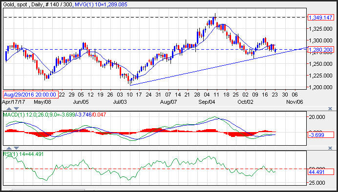 Os preços do ouro aumentaram, na Segunda-feira, ressaltando a partir do suporte visto por perto e a linha de tendência inclinada que vem junto a 1.272. Um fecho abaixo deste nível conduziria a um teste de suporte perto da baixa de Outubro em 1.275. O suporte abaixo nesta área são as baixas de Julho perto de 1.200. A resistência é vista perto da média de mudança de 10 dias em 1.289. O rally do metal dourado surge antes da reunião, de Quinta-feira, do BCE, e um rally no greenback, na sequência dos rumores de que Powell e Taylor lideram os candidatos de Trump à Presidência da Fed.