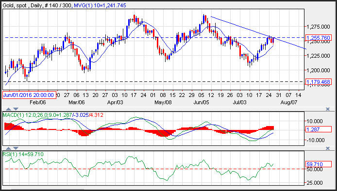 Os preços do ouro aumentaram e estão testando a resistência perto de uma linha de tendência inclinada em sentido descendente, em 1.256. O suporte do metal dourado está a ser visto junto à média de mudança de 10 dias em 1.241. O impulso é positivo, já que o histograma MACD (média de mudança convergência divergência) imprime no negro, com uma trajetória com inclinação ascendente que aponta para preços mais elevados do metal dourado.