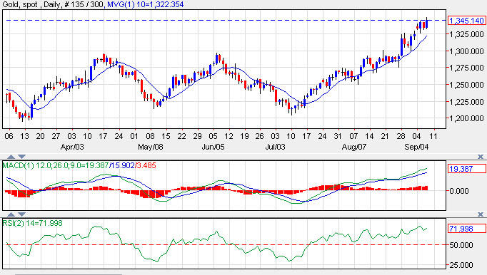 Os preços do ouro aumentaram à medida que o dólar perdeu terreno, na sequência da reunião do BCE, na qual o banco central não conseguiu discutir a flexibilização quantitativa. Um grande aumento das reivindicações dos desempregados também pesaram sobre o dólar, abrindo caminho ao aumento dos preços do ouro. O metal dourado fechou nas altas de 1 ano, já que está posicionado para as altas de Julho de 2016 em 1.371. O suporte é visto perto da média de mudança de 10 dias em 1.322. O impulso mantém-se positivo à medida que o histograma MACD (média de mudança convergência divergência) imprime no negro com uma trajetória ascendente inclinada que aponta para preços mais elevados.